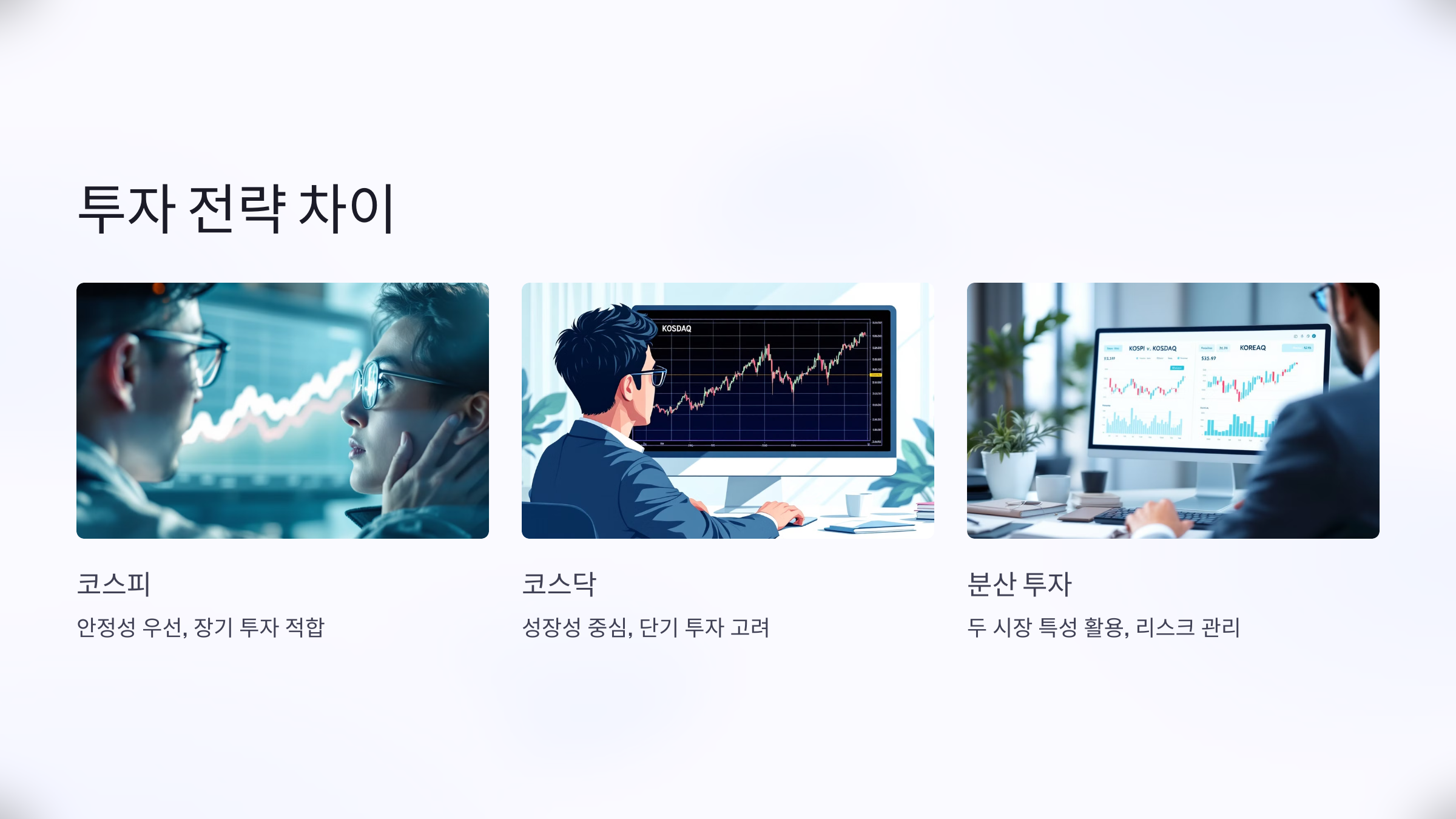 코스피와 코스닥은 각각의 특성과 장단점이 뚜렷하여, 투자 목적에 따라 선택이 달라질 수 있습니다. 만약 안정성을 중시하는 투자자라면 코스피가, 높은 성장 가능성에 집중하고 싶다면 코스닥이 좋습니다. 각자의 투자 스타일에 맞는 시장을 선택해 성공적인 주식 투자를 시작해보세요! 📈