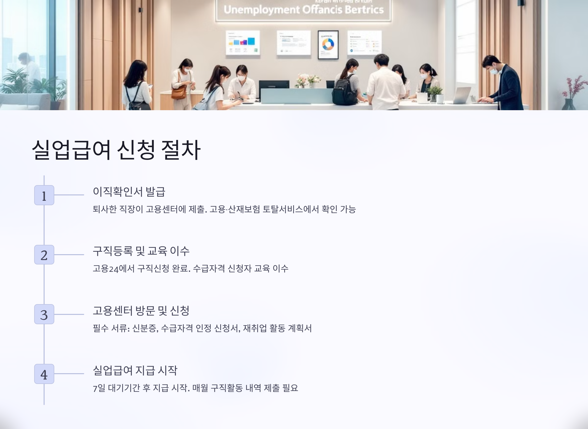 실업급여는 다음 단계를 통해 신청할 수 있습니다: